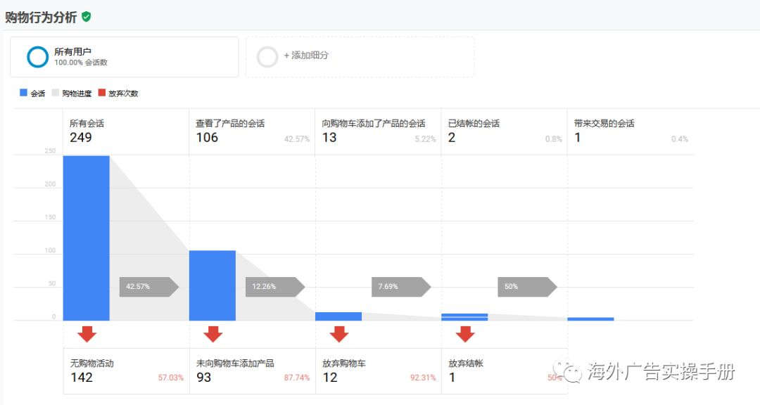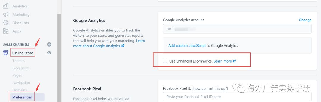 近期和企業(yè)的接觸中發(fā)現(xiàn),部分企業(yè)使用的是shopify網(wǎng)站。網(wǎng)站的用戶行為數(shù)據(jù)對我們優(yōu)化網(wǎng)站非常重要。之前講過了獨立站怎么布局增強型電子商務(wù)代碼,統(tǒng)計獨立站的用戶結(jié)賬行為數(shù)據(jù)和購物行為數(shù)據(jù)。 今天和大家分享一下shopify網(wǎng)站怎么布局增強型電子商務(wù)代碼,統(tǒng)計這部分數(shù)據(jù)。 還是先來看一下,配置好以后可以看到哪些數(shù)據(jù): 購物行為數(shù)據(jù): 結(jié)賬行為數(shù)據(jù): 接下來看一下,shopify網(wǎng)站怎么配置增強型電子商務(wù)代碼。對比獨立站,shopify網(wǎng)站增強型電子商務(wù)代碼的布局要更簡單。 第一步,先在GA里打開增強型電子商務(wù)統(tǒng)計 左下角管理 - 數(shù)據(jù)視圖 電子商務(wù)設(shè)置 打開電子商務(wù)和增強型電子商務(wù)統(tǒng)計 接下來設(shè)置一下結(jié)賬流程名稱。這里設(shè)置的名稱就是我們在結(jié)賬行為數(shù)據(jù)里看到的幾個步驟的名稱。需要注意一下,名稱要和實際的代碼部署對應(yīng)起來。 接下來在shopify后臺進行設(shè)置 先點擊后臺左側(cè)的Online Store - Preferences 勾選Enhanced Ecommerce,這里勾選后就會自動統(tǒng)計購物行為數(shù)據(jù)了 要統(tǒng)計結(jié)賬行為數(shù)據(jù),需要我們自己加一段代碼。 先點擊Add custom JavaScript 然后把這段代碼添加到框代碼框中 //Start of Checkout Steps for ee labelling var ShopifyCheckoutstep = Shopify.Checkout.step; 添加完這段代碼,結(jié)賬行為數(shù)據(jù)就也可以統(tǒng)計了。 小提示 這些數(shù)據(jù)非常寶貴,我們想優(yōu)化網(wǎng)站的時候不再毫無頭緒,不知從何做起。而可以分析這些數(shù)據(jù),找出網(wǎng)站有問題的環(huán)節(jié),加以優(yōu)化,從而提升網(wǎng)站轉(zhuǎn)化率。 做好了數(shù)據(jù)統(tǒng)計后,要記得定期分析數(shù)據(jù)哦,不要浪費這一寶貴資源。
