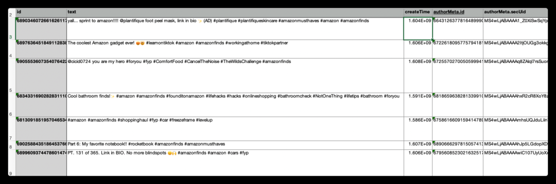 每個標簽下面都有視頻,這些視頻是根據點贊量降序排列的。如下圖,代表的是在 #amazonfinds 下,點贊量前三名的視頻。