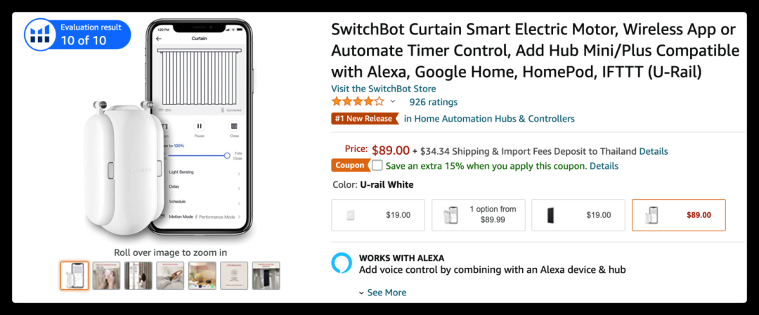 這是一個好物號分享的視頻,一個用手機就可以操控自動開窗簾的小機器(美國人到底是有多懶)。他的Bio引導大家去的是獨立站,搜索關鍵詞,在亞馬遜上這個產品是這樣的,如下圖,原來是類目第一。地址在這里 www.amazon.com/dp/B08FXFTX67
