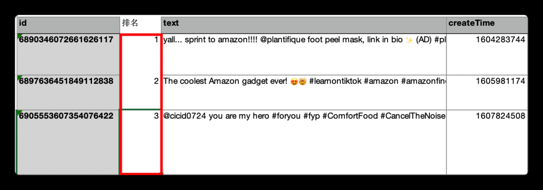 我們分別在視頻ID后插入一行,是這個視頻對應的本月排名。如下圖。