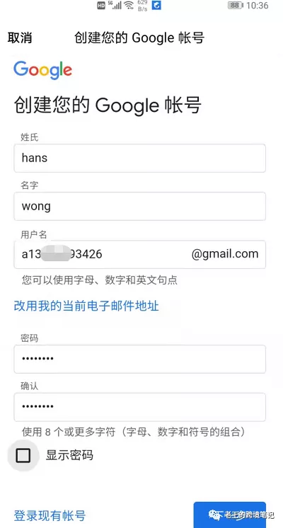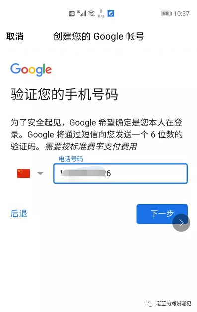 6、這樣操作就能把中國手機(jī)號不能注冊Gmail 的難題繞過了。后面就是填寫驗證碼,完成驗證,完成注冊。