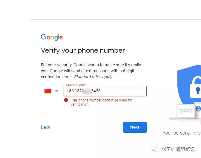 如果你有我前面文章寫的英國手機(jī)號和美國手機(jī)號,在這里就可以直接填(虛擬手機(jī)號不支持),然后收取驗證碼。如果填中國手機(jī)號,就提示號碼不能驗證。