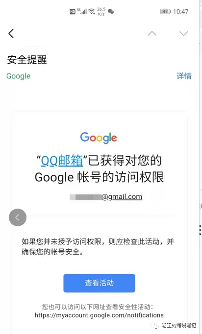 Google的安全提醒郵件也瞬間發(fā)過來了