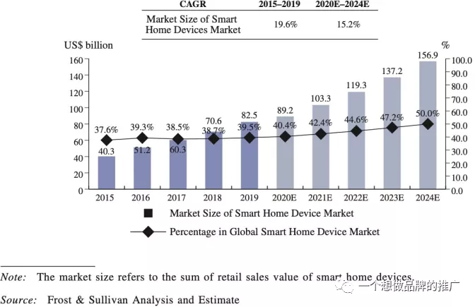 2019 年全球市場份額的 39.5%。在集成智能家居解決方案中,到 2024 年,美國智能家居設備市場預計將達到約 1,569 億美元,2020 年至2024 年間的復合年增長率為 15.2%。美國智能家居設備市場預計將占約 50.0% 2024 年全球市場份額的百分比。