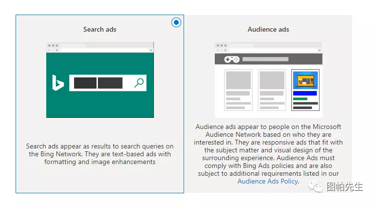 然后就是搜索類型的購物廣告(audience類似于谷歌的展示廣告,也是不太建議使用)