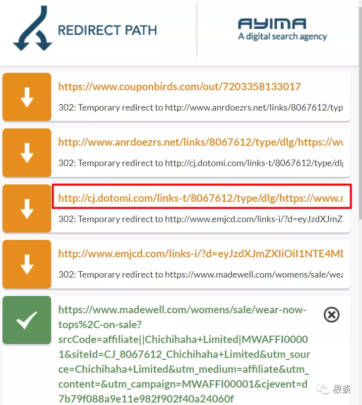 原理: 資源在推廣affiliate產品的時候一般會使用一些第三方的追蹤插件,同時聯盟平臺一般也會提供縮短鏈服務,而Redirect是一款查看重定向的插件。如果你在發現你的競爭對手的站外Affiliate link,通過這款插件可以看到其重定向的軌跡,可以發現其中一些推廣來源進行快速