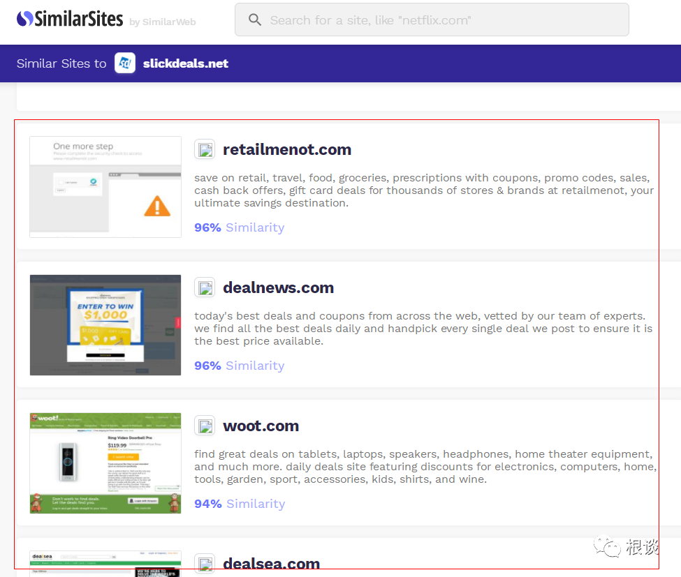 原理:資源之間也是相互競爭的,其實資源也有競品,如果你目前已經有一些比較好的推廣資源的網站,或者你通過一些方式知道了競品比較好的推廣資源,可以通過Similar Site這個網站(Chrome插件),可以快速幫你找到同一種類型的網站,類似Facebook廣告里面的LookLike.原理其實很簡單,同一種網站類型,有固定的主題和框架(比如論壇,blog),通過關鍵字進行搜索:同理,當你有一個目標競品,通過工具可以擴展到更多相似的競品。