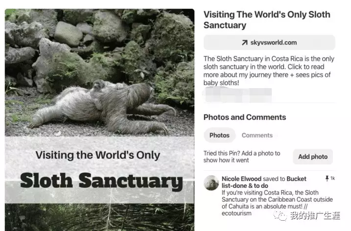 描述很多人會認為不重要,其實好的描述可以極大的提高用戶點擊圖片跳轉到你網站的幾率,同樣圖片的點擊率高也會讓pinterest提高你pin的排名。