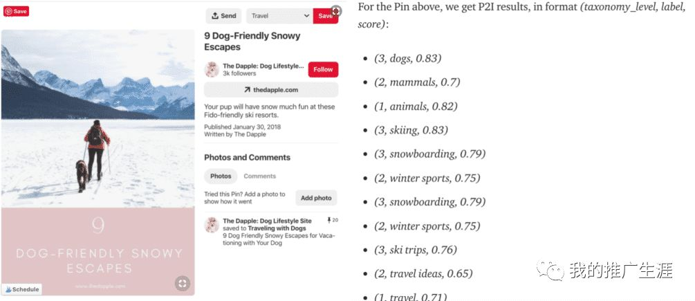 很多人可能都不知道“興趣”的意思,這里需要利用到工具tailwind app,當你上傳一張pin圖的時候,這個工具可以自動的檢測你圖片上的事物,然后列出一些相關的興趣愛好推薦,例如: