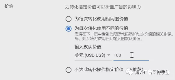 價值:“為每次轉化使用不同的價值”,輸入平均值(由于每次訂單的價值不同)