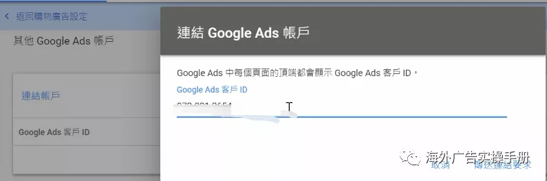 4>輸入你的Google ads 客戶ID,點擊傳送連結(jié)要求