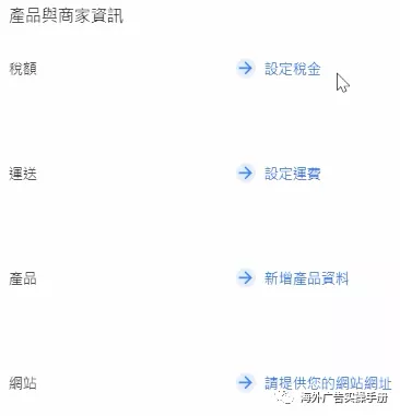 1>點擊【設(shè)定購物廣告】右邊的繼續(xù),設(shè)置稅金。