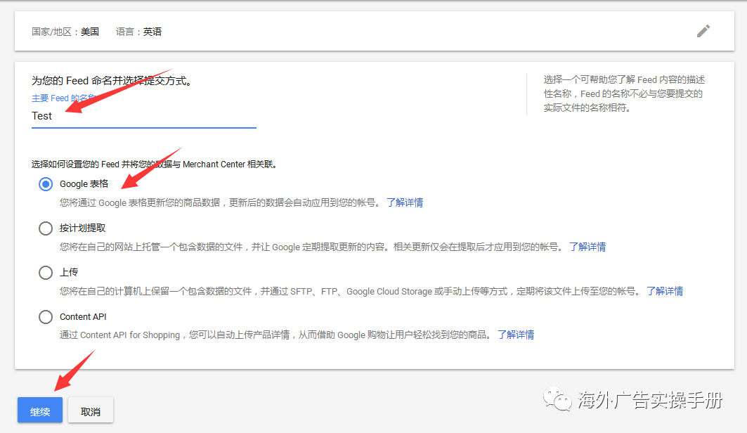 大家第一次上傳Feed改了幾次,用了多久審核通過正式上線的還記得嗎? 我們總結(jié)了一下經(jīng)常被問到的問題,還有自己踩過的坑,今晚跟大家分享一下,怎么寫一個符合谷歌Feed規(guī)范的Feed,如何一次成功。 新建Feed 首先打開Adwords頁面 >工具>Google merchant center 跳轉(zhuǎn)到Merchant Center>新建Feed 選擇目標(biāo)國家和語言 輸入Feed名稱和提交方式。這里提交方式選擇的是Google表格,比較簡單 然后設(shè)置提交頻率和時間 選擇利用模板生成Google電子表格,設(shè)置好提交頻率,時間和時區(qū)。頻率我們選每天,有時候有新的更改著急提交也還可以手動提交。 新建好后會跳到Feed頁面,打開表格就可以操作了。 下面是必填選項 1、ID ID 這個比較好填,保證每個商品的ID不重復(fù),我們用產(chǎn)品的SKU就可以。 2、Title 最多用150個字符。 有幾個點需要大家注意一下: (1)Title最多寫150個字符。購物廣告不是根據(jù)關(guān)鍵字觸發(fā),影響購物廣告是否展示最關(guān)鍵的因素是Title。我們要把所有重要的關(guān)鍵字和信息都包含到Title里面。 (2)在前臺展示時只展示前22個字符,所以前22個字符是客戶能看到并根據(jù)這22個字符判斷要不要點擊的關(guān)鍵因素。所以前22個要好好寫,寫最能抓住客戶的點。 (3)不能包含促銷文字,比如免運費,也不能全部大寫。 (4)如果目標(biāo)國家是美國,并且支持分期付款,要在Title里寫明支持分期付款。 3、Description 最多5000個字符, 不能包含促銷文字,比如免運費,也不能全部大寫。 4、Link 商品著陸頁 5、Condition 使用情況 New 全新 Refurbished 翻新 Used 二手 必須保持和著陸頁價格一致 這里順帶講一下sale price. 如果商品打折,原價200,促銷價100,就寫price是200,sale price是100. In stock有貨 Out of stock 缺貨 Preorder 預(yù)定 8、Image link 商品主圖片網(wǎng)址 復(fù)制圖片地址的方法:把鼠標(biāo)放到要使用的圖片上面,右鍵-復(fù)制圖片地址。 對于非服飾類的商品,像素不低于100*100 服飾類商品,像素不低于250*250 圖片不能高于6400萬像素或者大于400M 9、Brand 品牌 寫產(chǎn)品品牌即可 10、google product category google商品類別 注意這個地方必須是谷歌商品類別,不是我們自己寫的或者其他的網(wǎng)站的類別。需要參考谷歌商品類別表來確定自己的商品類別。這是總表,大家自己找最適合自己的一個類別,提交完整的路徑,例如: Apparel & Accessories> Clothing Accessories> Hair Accessories> Wigs 到這我們講完10個項目了,都是相對簡單的。 接下來講3個被問的頻率最高,也最容易審核不通過的項目 11、GTIN 商品的全球貿(mào)易項目代碼 UPC 適用于北美 EAN 適用于歐洲 JAN 適用于日本 ISBN 適用于圖書 ITF-14 適用于多件組合裝 如果商品沒有GTIN或者M(jìn)PN,將 identifier_exists [是否有ID] 設(shè)置為 no [否](FALSE) 12、MPN商品的制造商部件號,在沒有GNIT的時候用 如果沒有GTIN,也沒有MPN,可以自己編一個號填在MPN,最多70個字母數(shù)字字符,并且盡可能編的不要重復(fù) 13、Shipping 和Tax (1)、這2個項目既可以在Feed里設(shè)置,也可以在賬號里設(shè)置。如果兩個地方都設(shè)置了,就會以Feed里的為準(zhǔn)。這里建議在賬號里設(shè)置,因為更簡單,不易出錯 (2)如果在Feed里設(shè)置,名稱里要提交國家/地區(qū),郵政編碼和價格,以美國,包郵為例,最簡單的寫法是: 名稱:shipping 值:US:::0 USD 注意一下US后面有3個冒號
