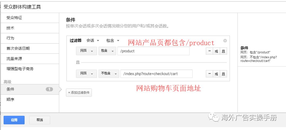 如果想定位到最精準的用戶,可以設置加入過購物車的用戶,這樣訪問過網站但是沒有加入購物車的用戶會被排除掉,用戶列表更加精準。