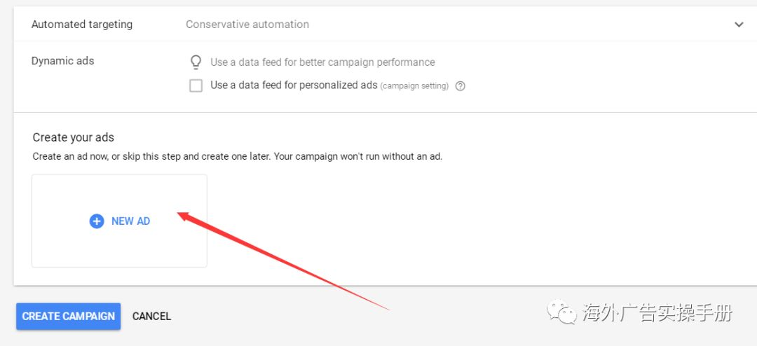上傳完廣告素材以后,點擊創建廣告系列,我們的第一個再營銷廣告系列就創建完成了。
