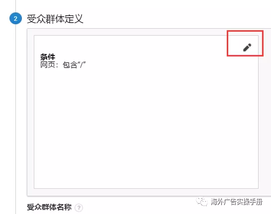 接下來我們就可以定義受眾群體了。講一個比較常用的方式——訪問過我網站的特定部分。