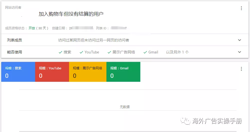 成員資格有效期:時間越短越好(例:展示廣告列表最低1000個用戶,天數太短沒辦法滿足需求。可以分別創建一個90/60/30天的進行數據收集)
