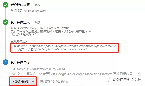 受眾群體定義(這里是加購未結算,所以包含的是加購的網址,不包含結算的網址)