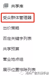 1、打開賬戶>工具與設置>共享庫>受眾群體管理器