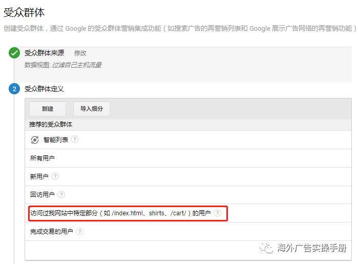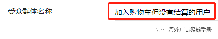 受眾群體名稱:(根據實際情況進行設置)例:加入購物車但沒有結算的用戶