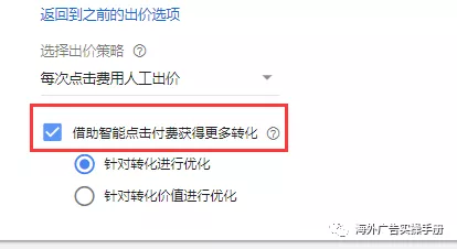 (2)勾選“借助智能點擊付費獲得更多轉化”