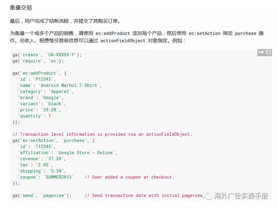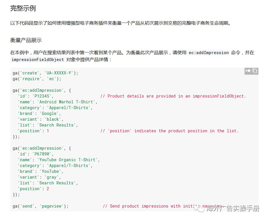 衡量展示需要用ec:addImpression這個命令,所以代碼第一行就是ec:addImpression。