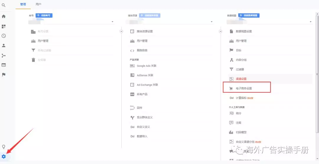 我們先點擊后臺的管理,然后選擇目標數據視圖下的電子商務設置