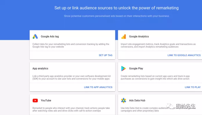 一般來(lái)說(shuō),GDN廣告是透過(guò)我們?cè)O(shè)定的Targeting方法去投放給某一類受眾,這樣的話我們會(huì)設(shè)定Audience List,意思是我只想把廣告投放給Audience List中的受眾,讓Audience List中的受眾再次看到我們的廣告,作為GDN廣告的Target方法去達(dá)至再營(yíng)銷!至于設(shè)定Audience List的方法十分簡(jiǎn)單,我們需要有一個(gè)Google Ads帳戶和Google Analytics帳戶便可。