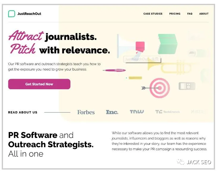 JustReachOut的特別之處就在于,它的目標(biāo)對(duì)象是新聞網(wǎng)站的記者而不是博客站長(zhǎng)或者博客編輯.它擁有最大最全面的記者數(shù)據(jù)庫.有的同學(xué)可能會(huì)認(rèn)為新聞網(wǎng)站對(duì)我們的外鏈建設(shè)和網(wǎng)站推廣并沒有太大作用,因?yàn)橄嚓P(guān)性并不高.事實(shí)上并非如此,新聞網(wǎng)站毫無疑問具有極高的域名權(quán)重。