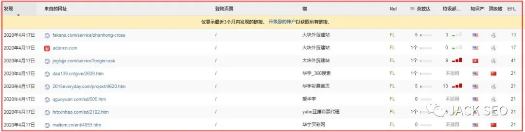 “IP”指的是該外鏈源網站的IP所屬國家,而不代表該網站或者該網站作者的國籍。比方說Jack老師買的主機是國外的,那么如果這里檢索到的是我的主機,就顯示為美國,但Jack老師是中國人,所以個人認為這個IP屬性沒有太大的參考意義。除非說你的外貿網站是特定對象國家比方說西班牙,那建議你去找ip為西班牙的。