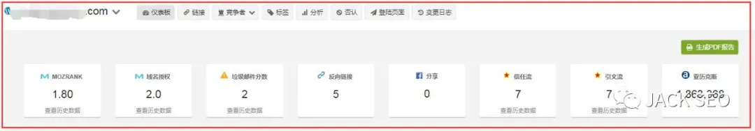 MOZRANK:(Mozrank代表鏈接受歡迎程度得分。頁面通過鏈接到它們的其他頁面的數量和質量來獲得 Mozrank。該分數的取值區間是0到10。因此,將其從3提高到4比從8提高到9容易得多)