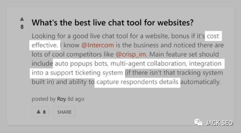 您可以使用“產(chǎn)品搜尋討論”來了解潛在客戶如何描述您的銷售。為什么?在ProductHunt上發(fā)布問題的人中,有90%的人已經(jīng)在Google上尋求解決方案。然后他們空了出來。因此,記下人們用來描述他們的問題的詞語……