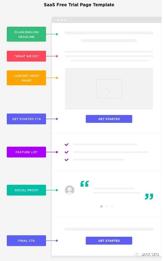 4.get started CTA:在經過了上面的3個大內容版塊的輸出之后,可能有部分客戶已經開始心動了,那么我們要做的就是先將這部分客戶口袋里面的錢轉化為我們自己口袋里的錢,不要想著大魚小魚一起抓,有機會的情況下要堅決執行落袋為安的理念!