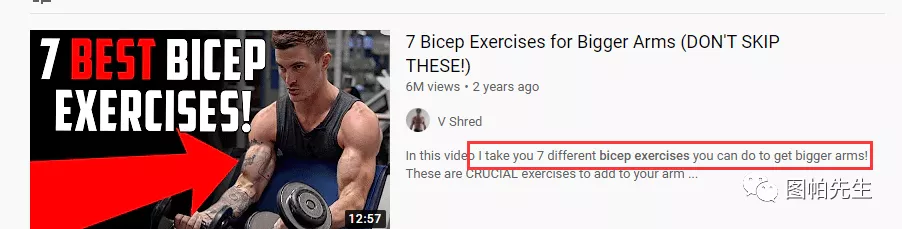 比如截圖里面,馬上就點明視頻內容:7 different bicep exercises you can do to get bigger arms
