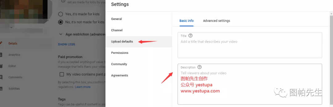 這里我建議使用YouTube上傳默認設置功能。這個功能可以節省你的時間,因為你可以設置你的默認信息,未來上傳的視頻就會自動補充描述了。