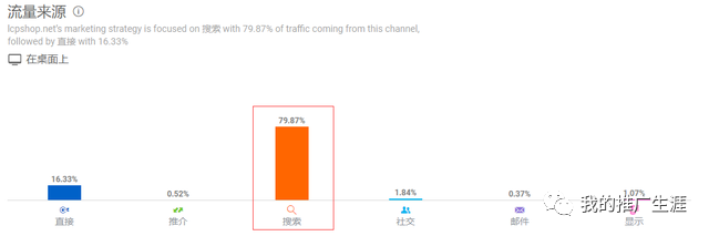 我們可以看下網站的流量來源,最重要的部分是搜索流量,包括了谷歌自然搜索,谷歌搜索廣告,谷歌購物廣告等等。
