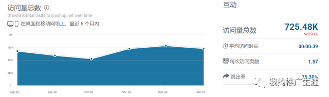 網站的流量,基本上每個月訪客維持在70萬左右,每天2萬多的訪客,這個對于獨立站來說已經非常的不錯了。