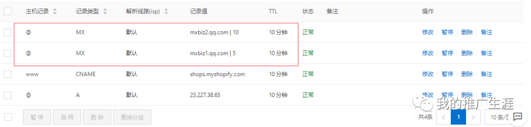 記錄值:mxbiz2.qq.com ,優先等級是10。另外一個是 mxbiz1.qq.com ,優先等級是5.