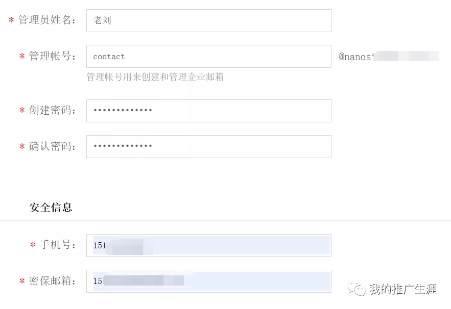 點擊“同意協議并提交”,然后我們又要輸入管理員姓名,管理賬號,密碼,手機號,密保郵箱。