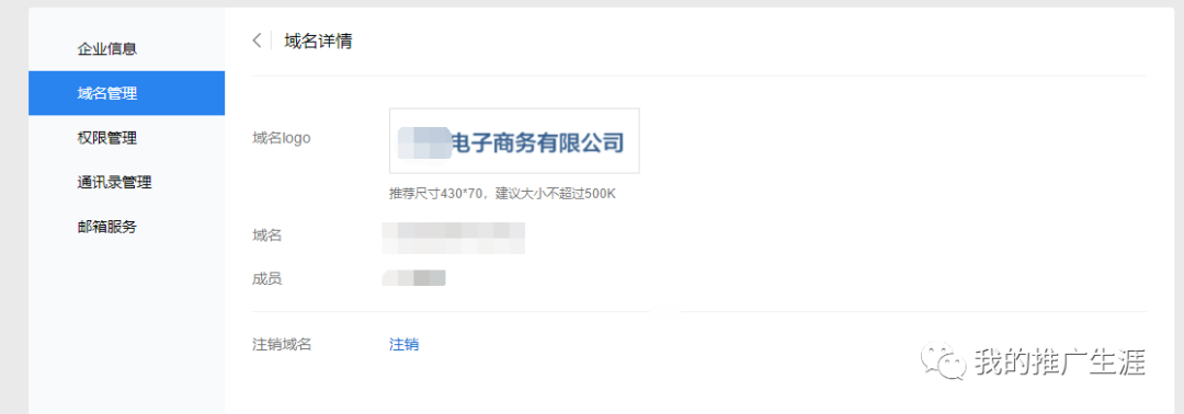 登入后,點擊右上角“我的企業”,“域名管理”,然后輸入自己的域名,