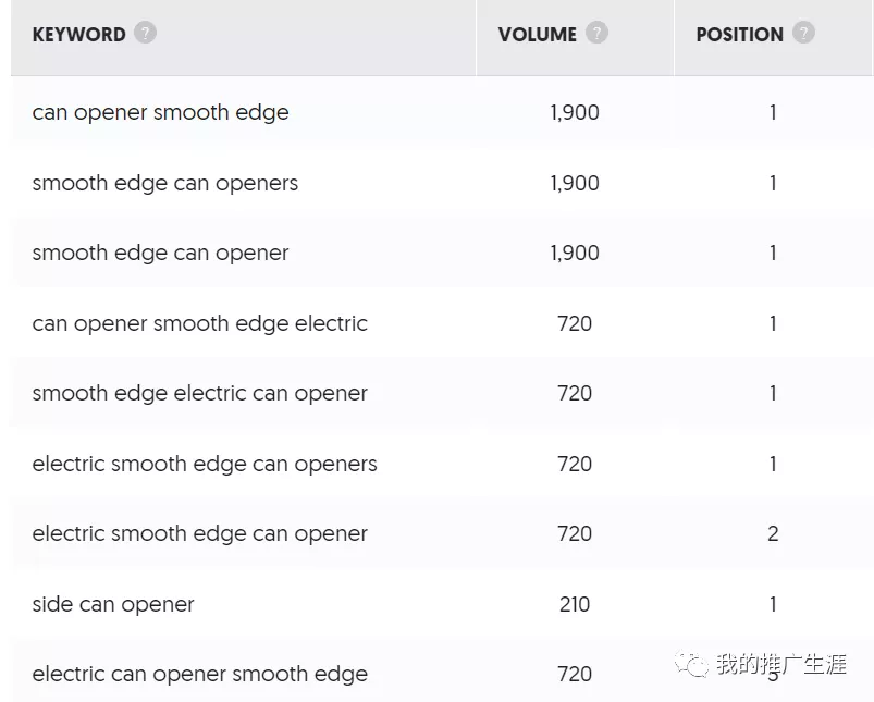 我們可以看下這個最熱門的頁面到底有哪些關鍵詞引來了流量:smooth edge can openers,很多人也會奇怪,為什么產品的關鍵詞能夠獲取到谷歌的排名,其實現在很多產品的關鍵詞,谷歌都會給1-3個best的網頁參與排名。