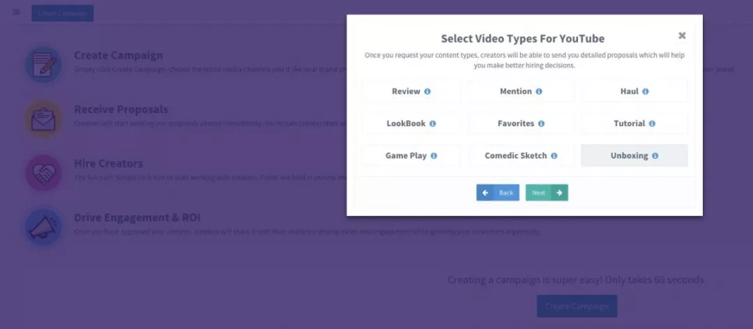 每個網紅博主的人物簡介都有他們過去與品牌合作過的內容,以及他們建立受眾的所有渠道。該平臺讓您可以輕松瀏覽和評估您想與之合作的網紅博主。