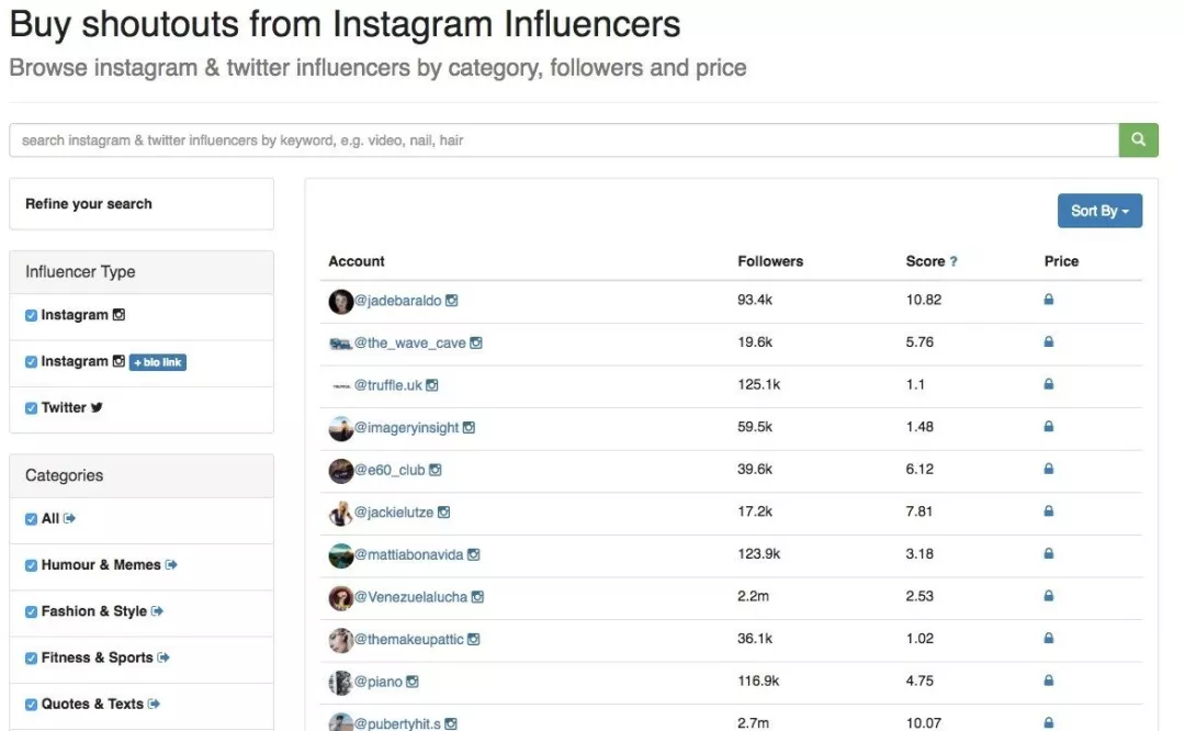 Shoutcart是購買Shoutouts服務的市場。盡管有些原創博主的價格可能非常便宜,但它仍是一個相當開放的平臺,因此請務必仔細評估您想與之合作的網紅賬號。