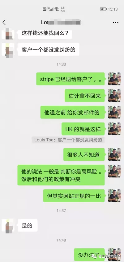 1、千萬別用HK 的Stripe賬戶,早期的HK賬戶的確沒啥問題,不過現在用的國人太多。問題就出來了 。我先貼幾個聊天記錄。